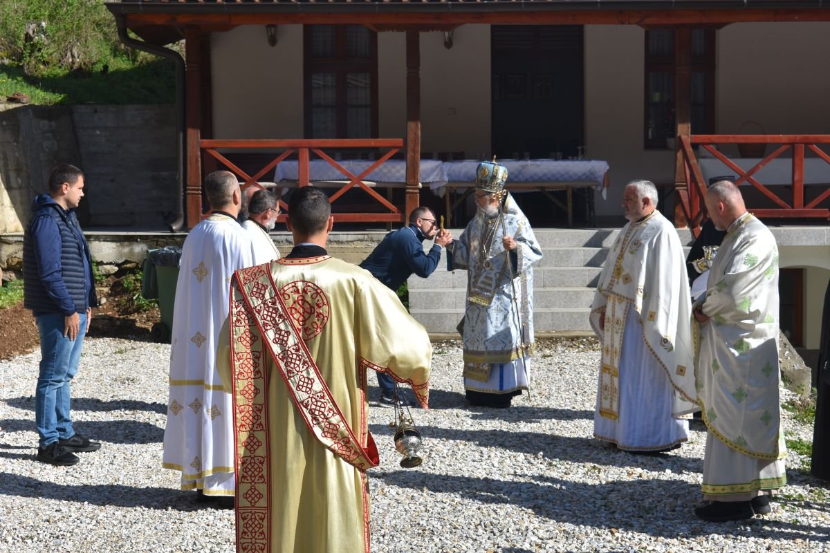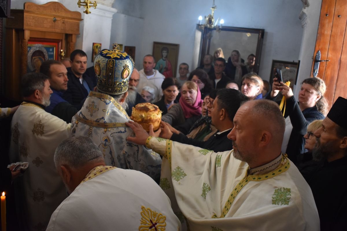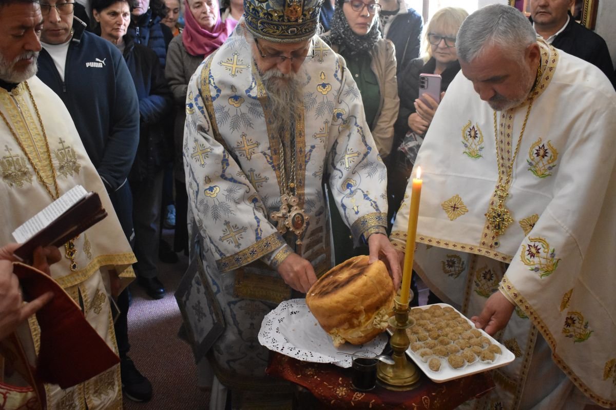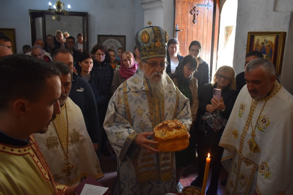 Након Литургије, Високопреосвећени Митрополит Пахомије освештао је славски колач и жито у част Пресвете Богородице, упутивши присутнима архипастирску поуку о значају Богородичине заштите и милости, која као Живоносни Источник непрестано излива благодат на верне.